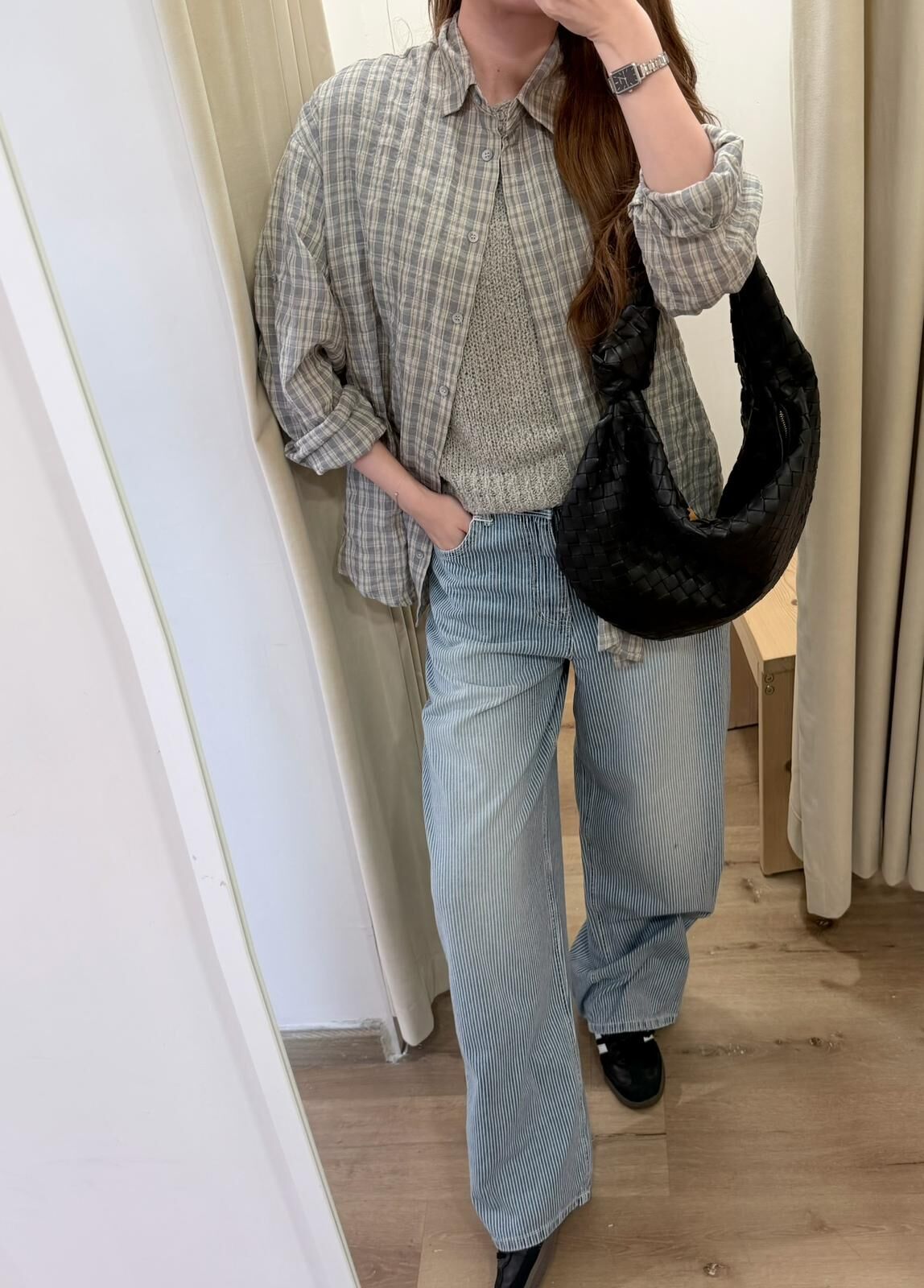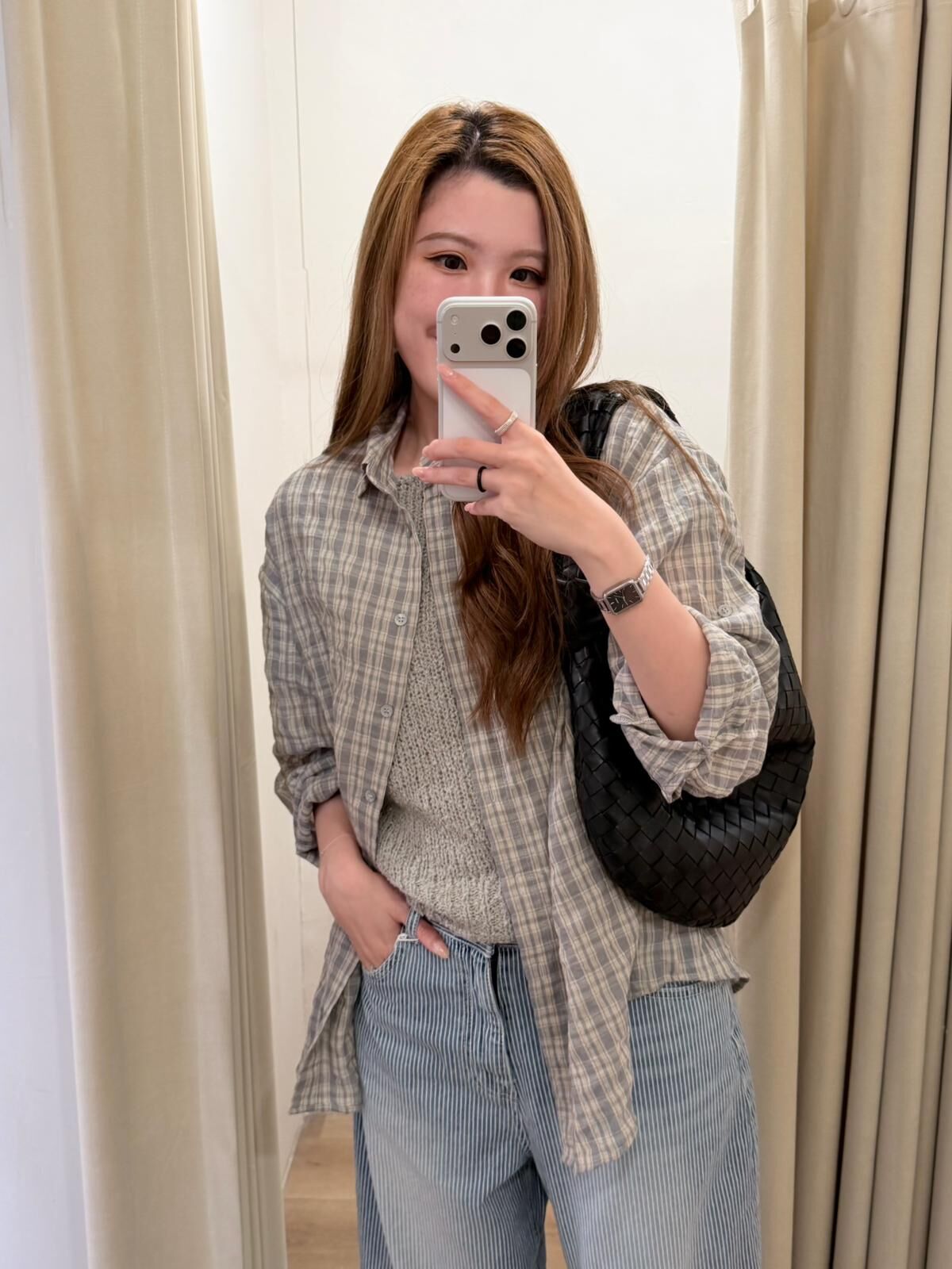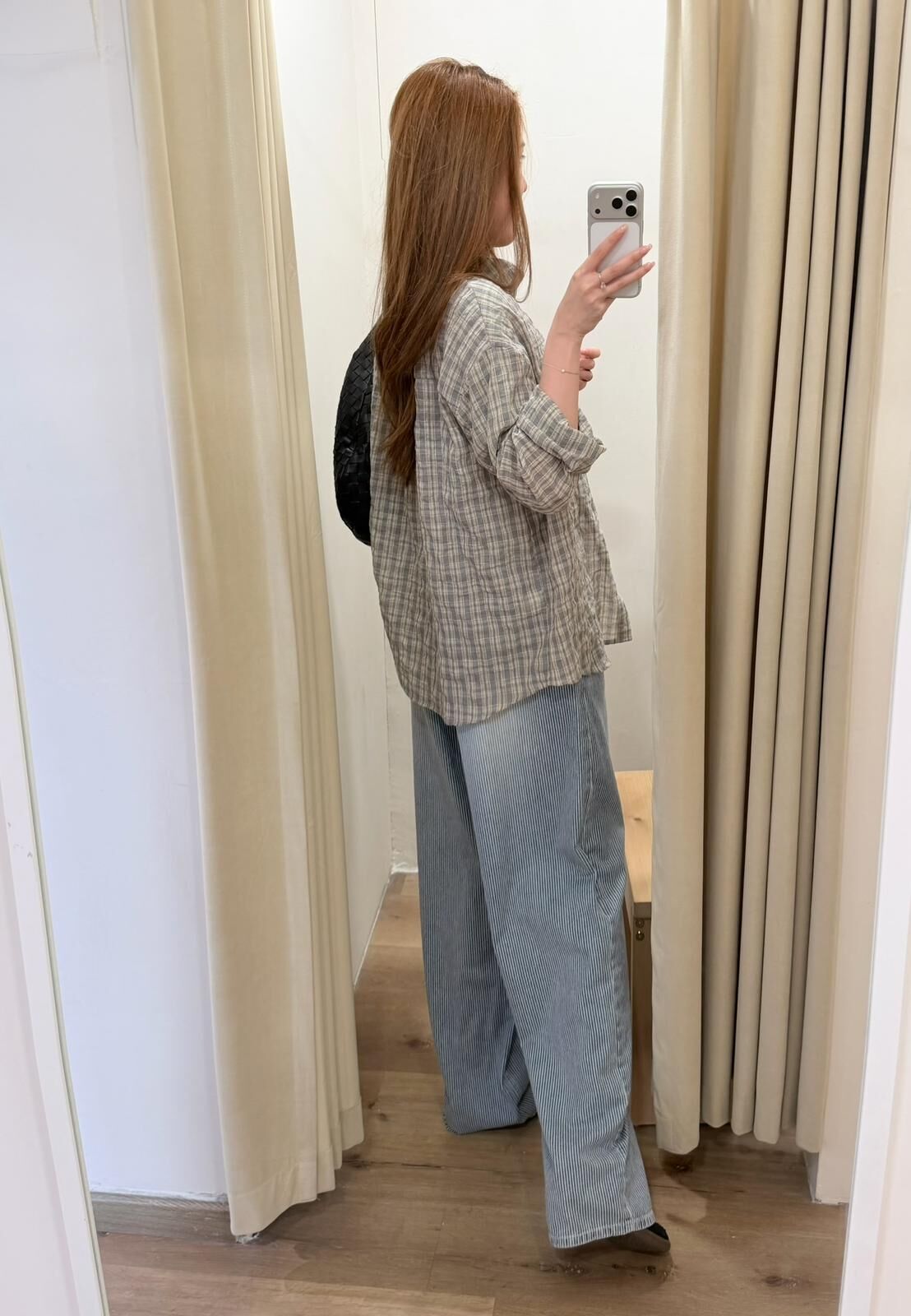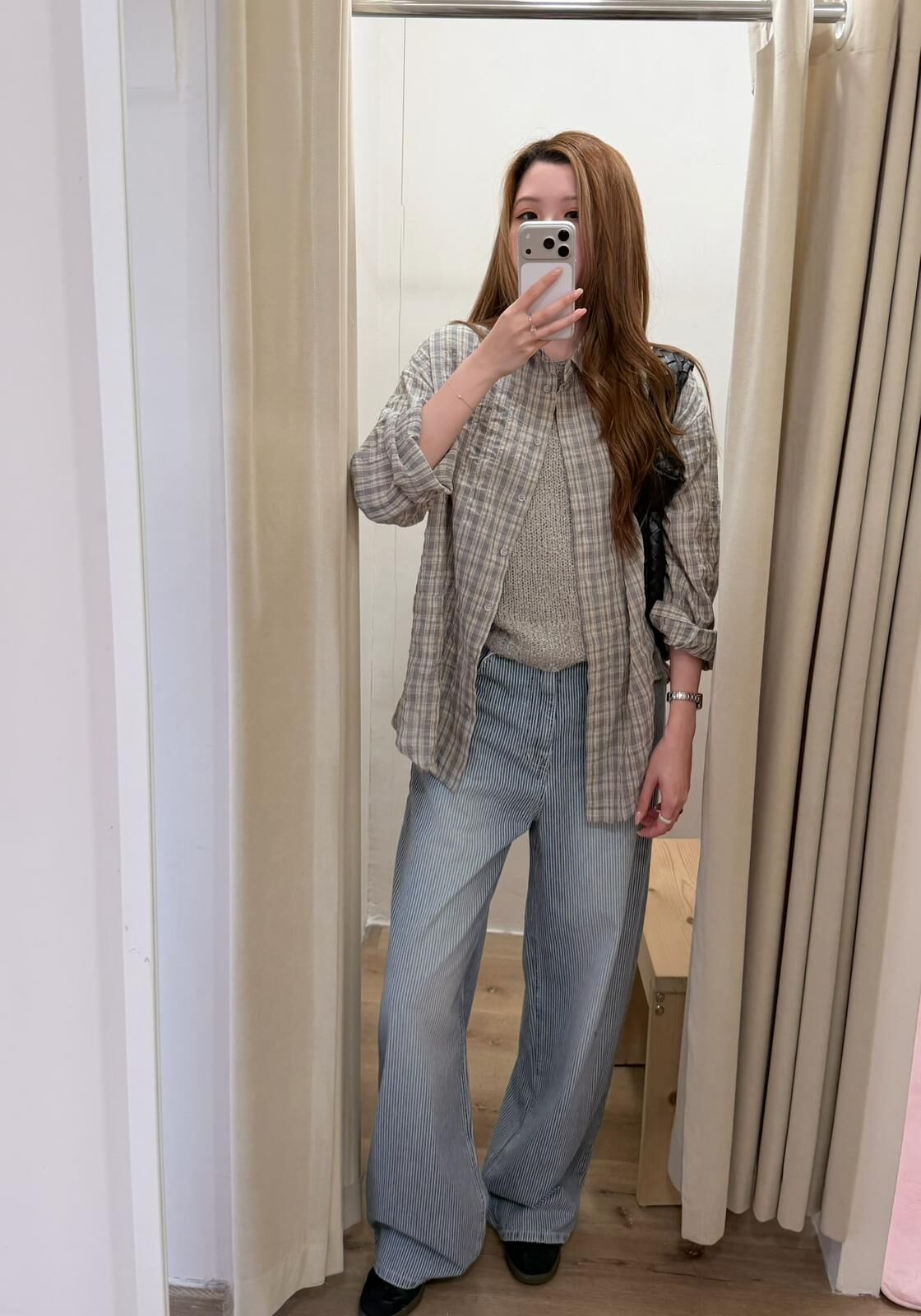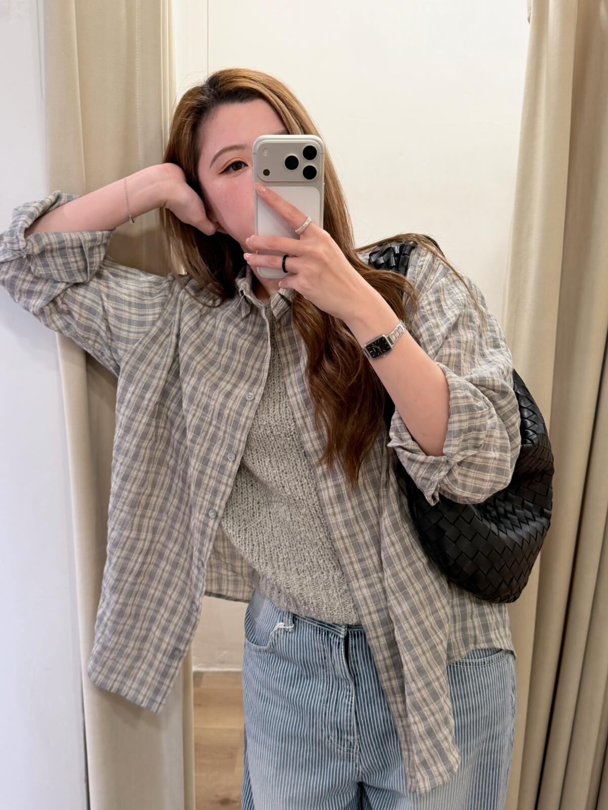 [現貨/預訂]微皺感格子透條襯衫(灰/藍)